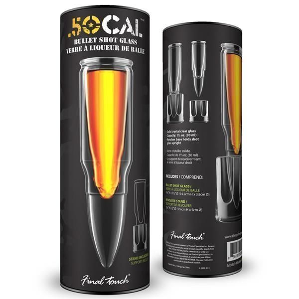 Shotglas i form av en 50. kaliber patron