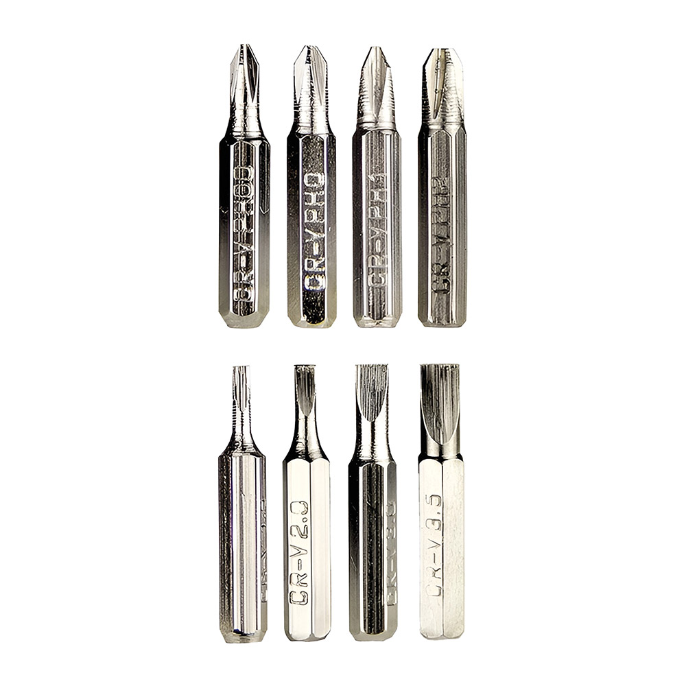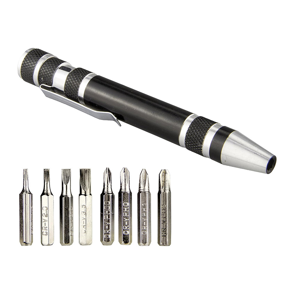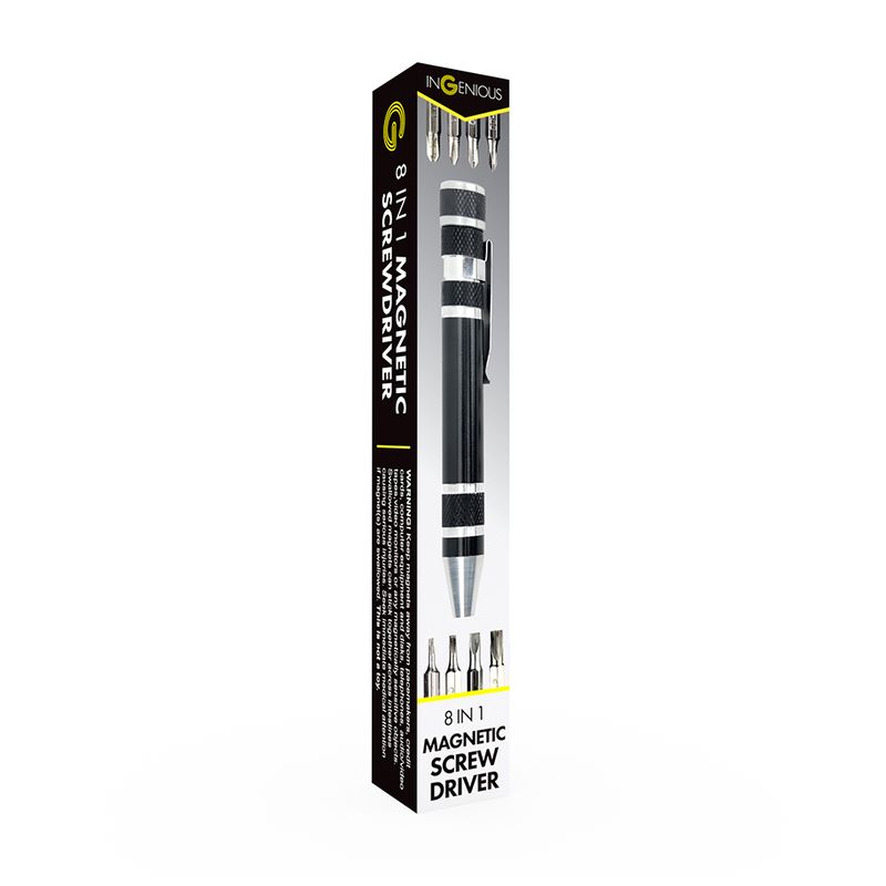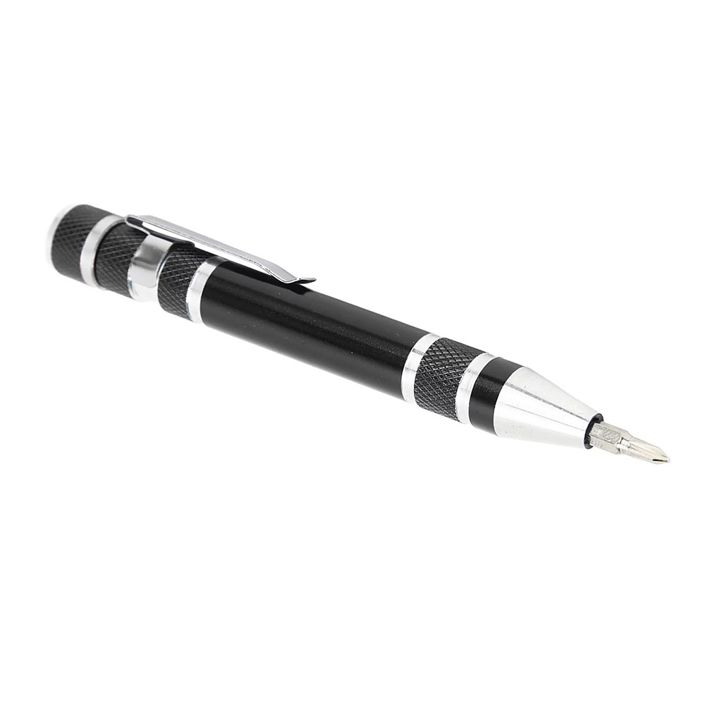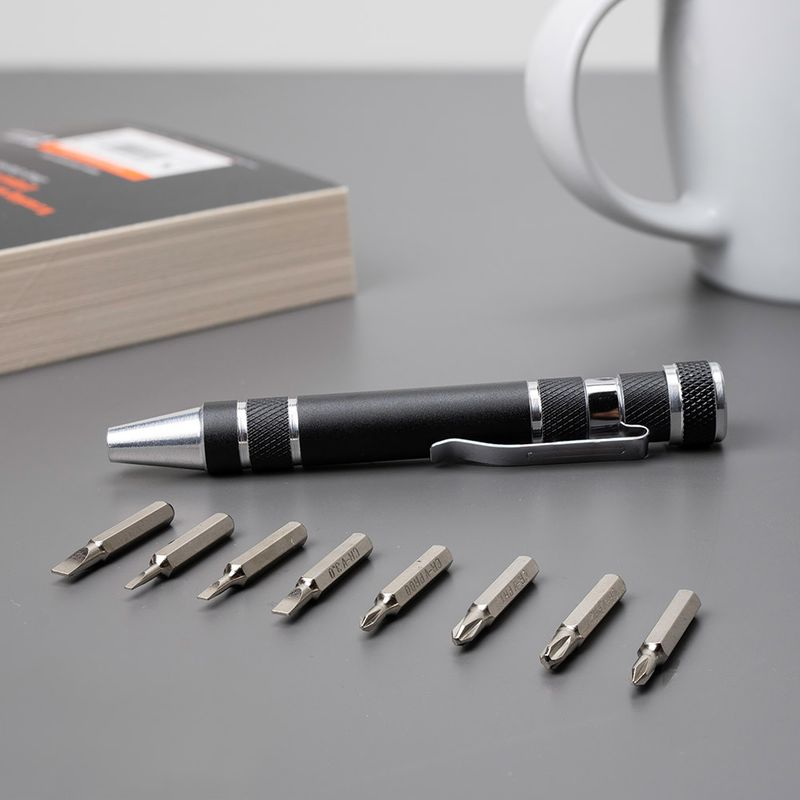 Denna 8-i-1 magnetiska skruvmejsel i fickformat erbjuder mångsidighet med sina åtta utbytbara verktyg. Perfekt för små precisionsarbeten.