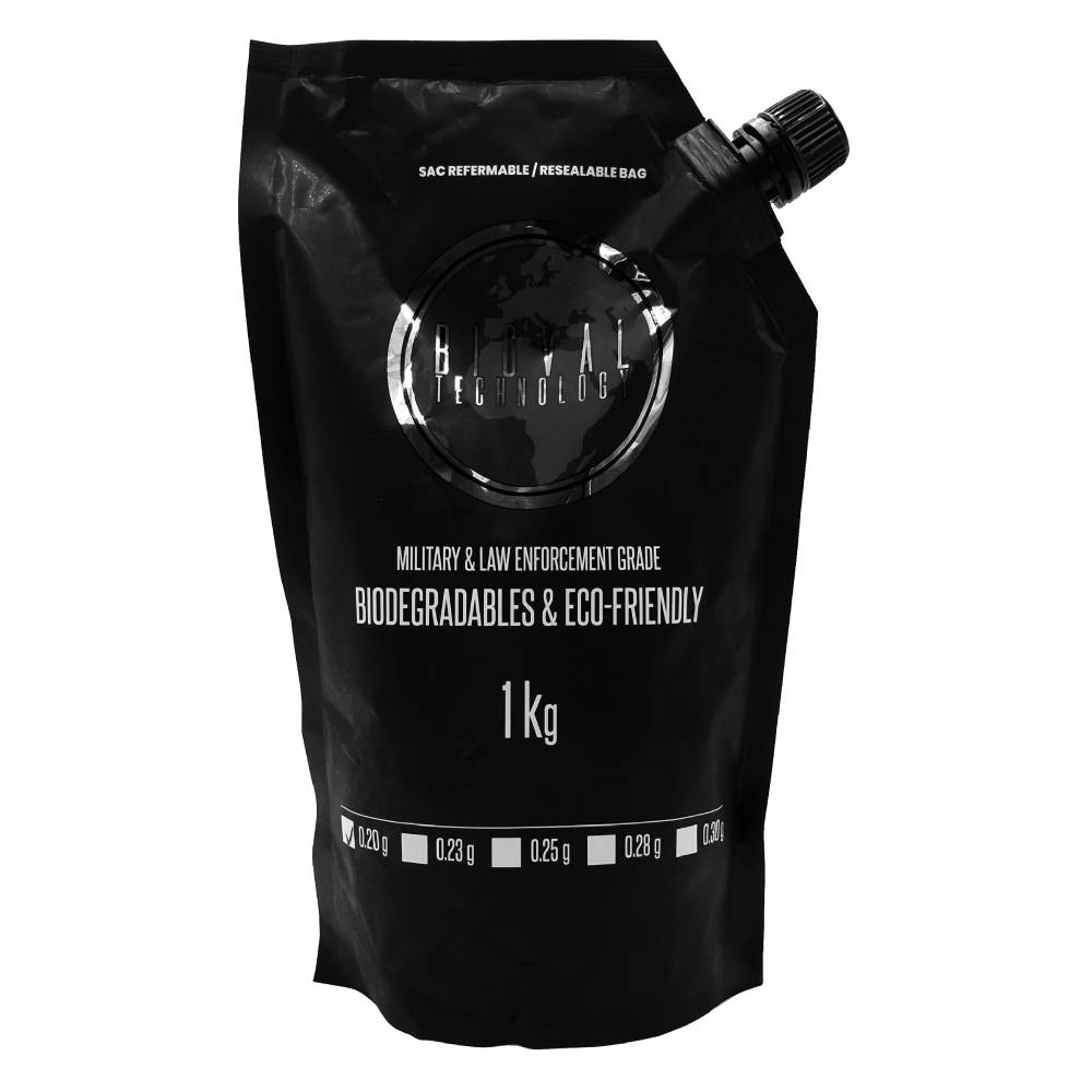 | Uttänkt och patenterad i Schweiz, Bioval BBs är gjorda för att tillgodose behoven hos poliser och soldater när de tränar med icke-dödliga luftvapen. Deras höga hantverksnivå, med respekt för kriterierna i deras ursprungsland, säkerställer stor noggrannhet för spelarna på planen, medan deras biologiskt nedbrytbara certifiering gör att de kan spelas överallt, utan att riskera att skada naturen. |