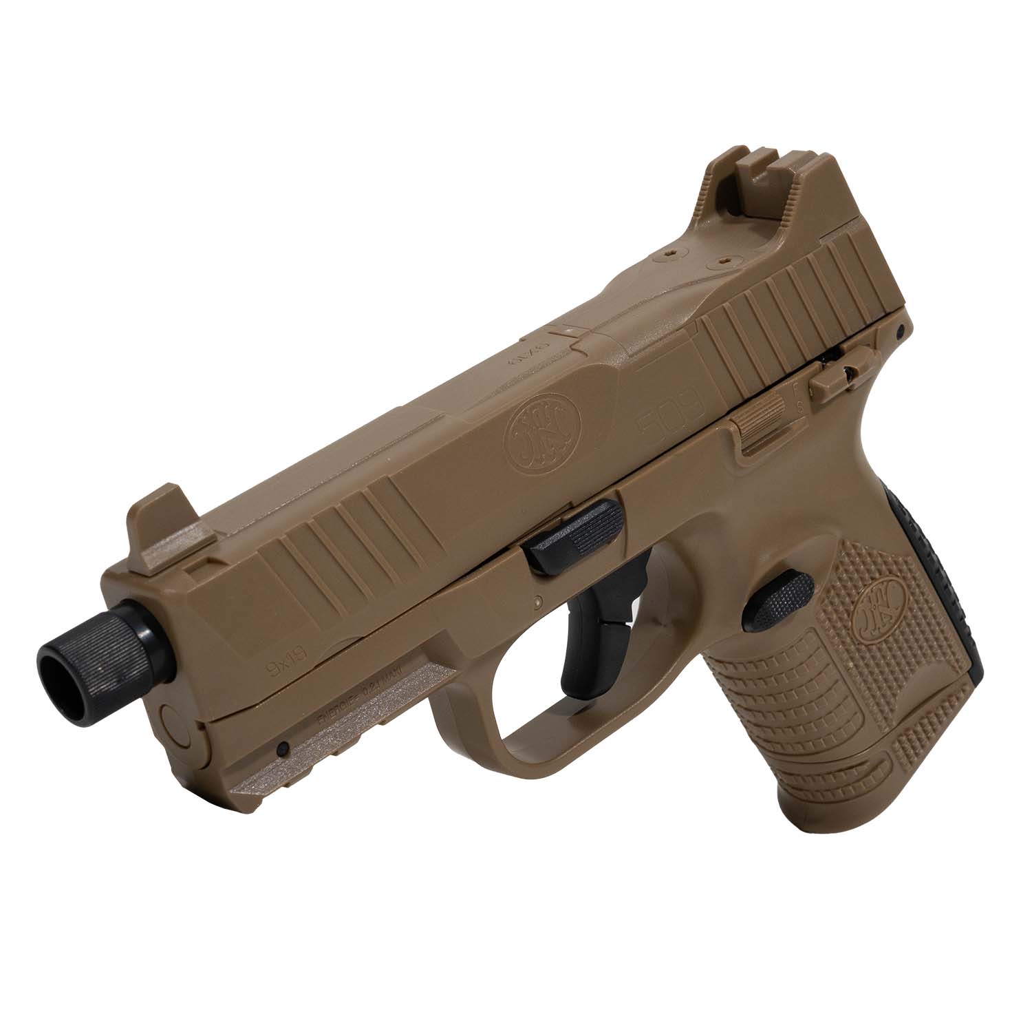 Prisvärd fjäderdriven airsoft-kopia av FN Herstal 509 Compact Tactical. Omladdas med mantelrörelse och har ett stort magasin som rymmer 90 skott.