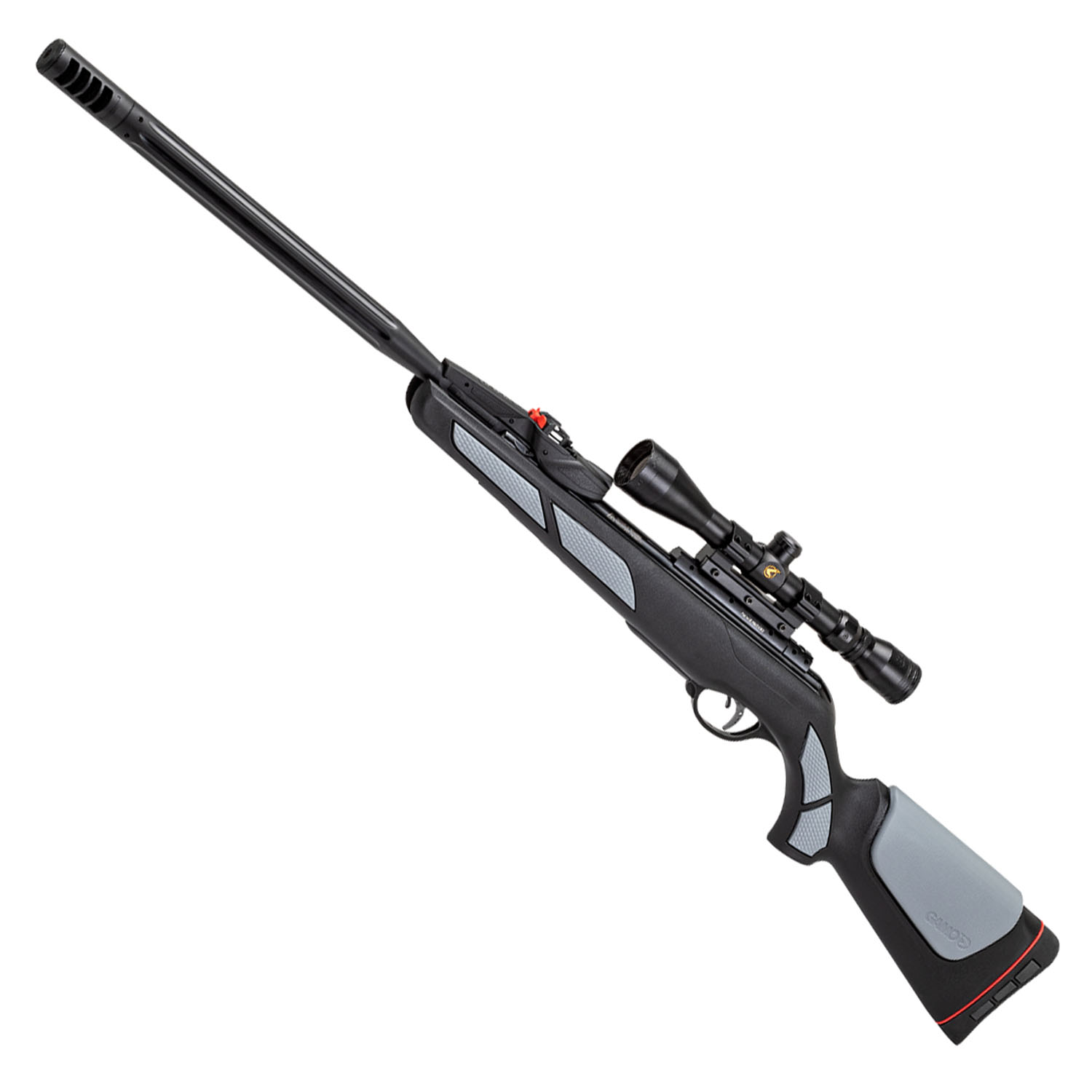 Detta luftgevär har en ny kolv som kombinerar en traditionell jaktstocksdesign med nylonmaterial av fordonskvalitet. Framstock, kolv och kindstöd är NON-slip.