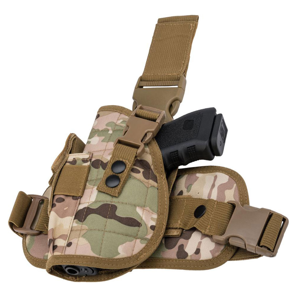 Slitstarkt benhölster tillverkad i kraftig nylon som passar de flesta medelstora pistolmodeller som t.ex Cot 1911, Sig Sauer 226 och Beretta M9.