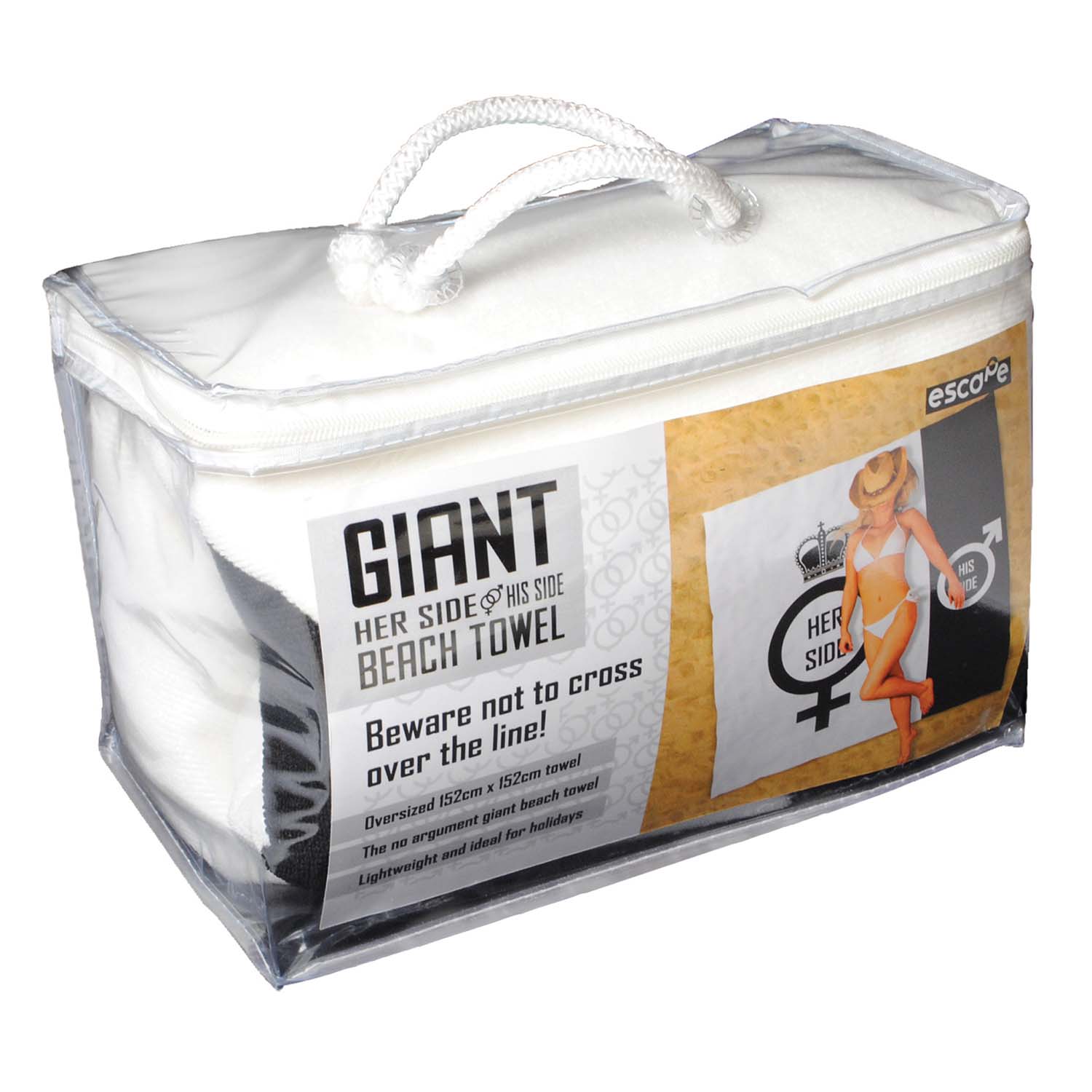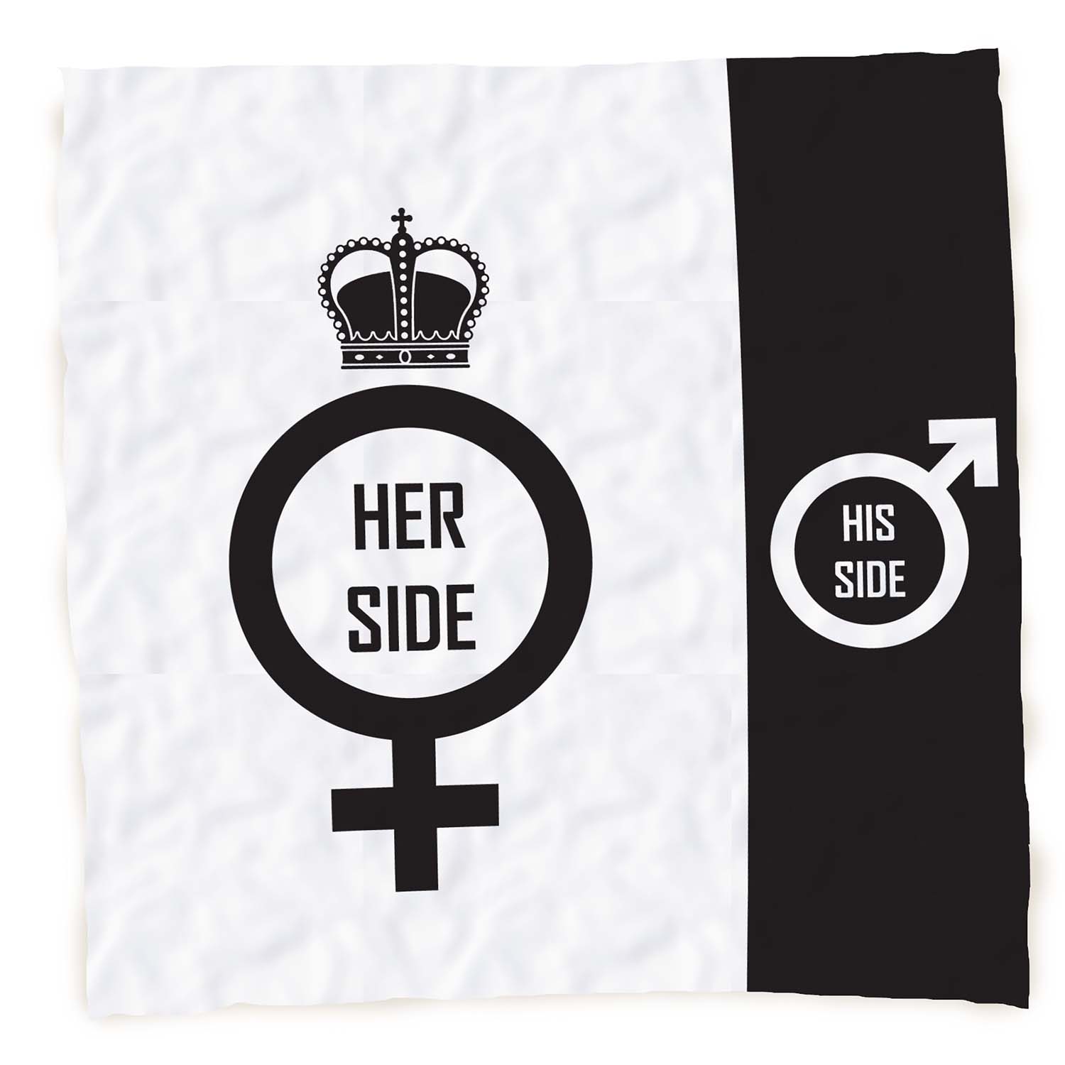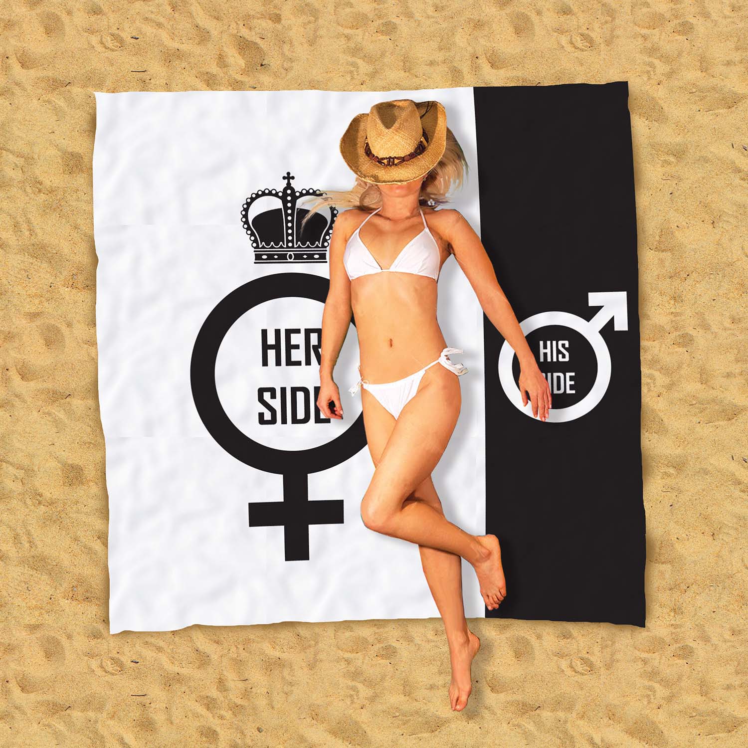 Med den här strandhandduken slipper ni slåss om utrymmet när ni solar på stranden. Den har en del för henne och en del för honom (Her side / His side). Rättvis uppdelning om ni frågar oss!