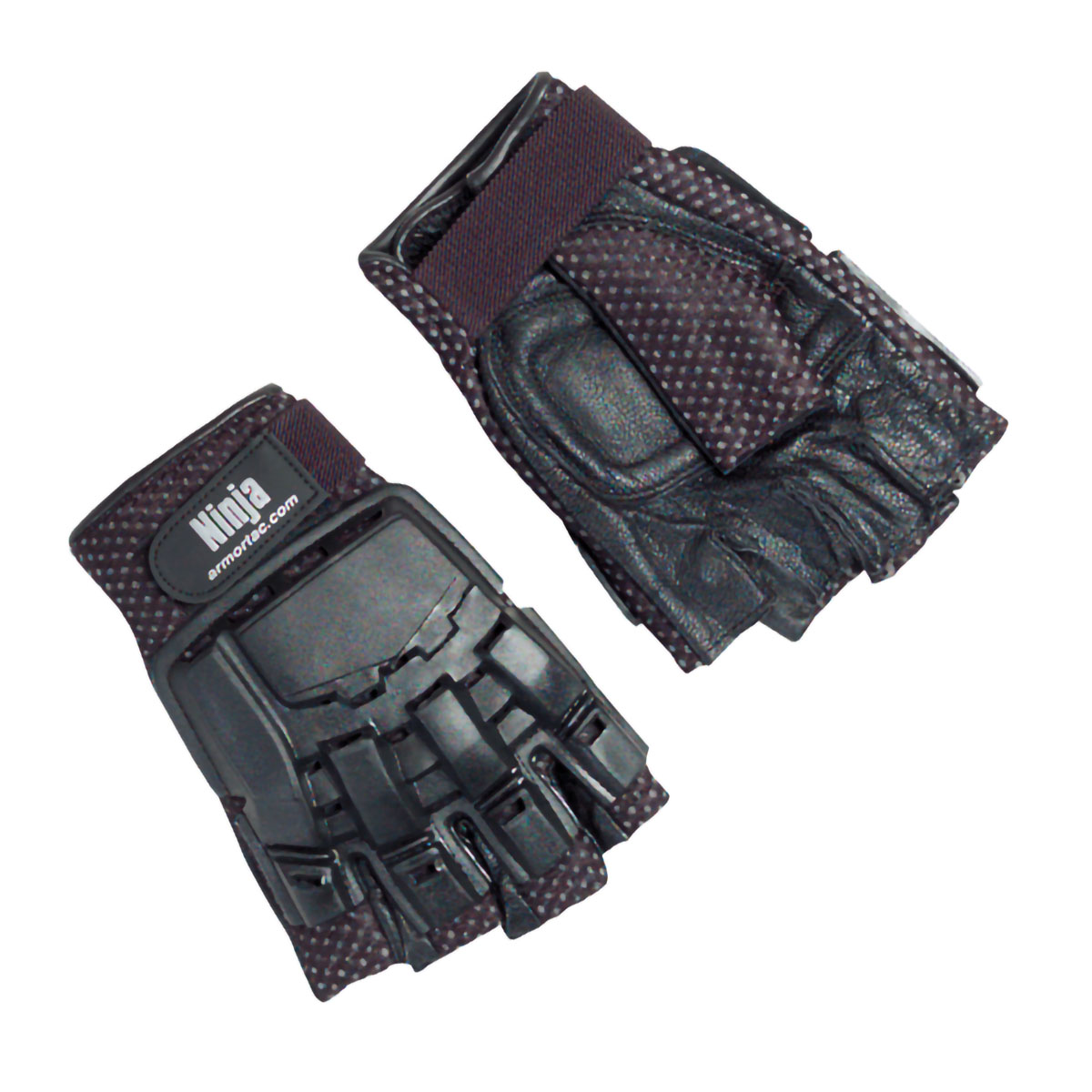 Skyddande svarta halvfinger vantar i läder med förstärkningar i handflatan och på handryggen.