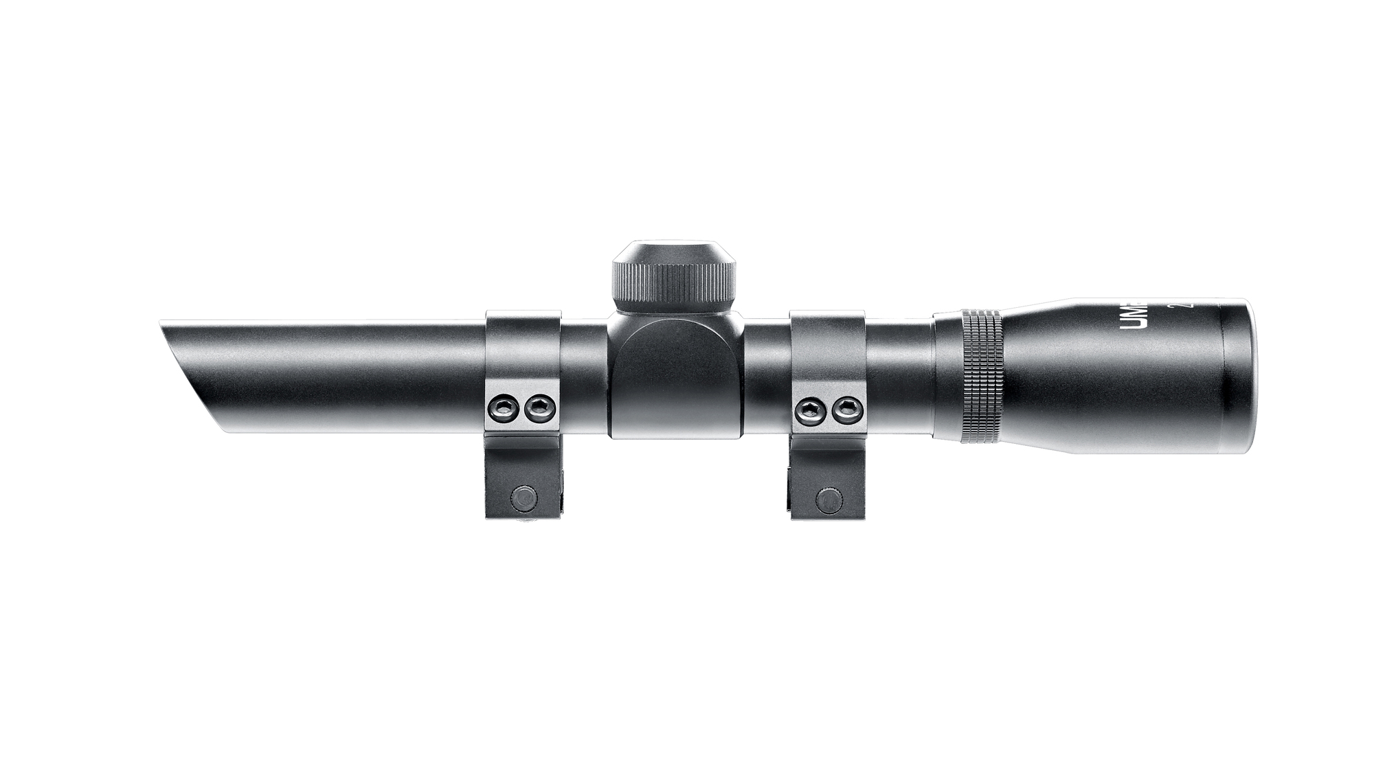 Umarexs kikarsikten har en slimmad design med Umarex-loggan vackert ingraverad i aluminiumet ovanför okularet.