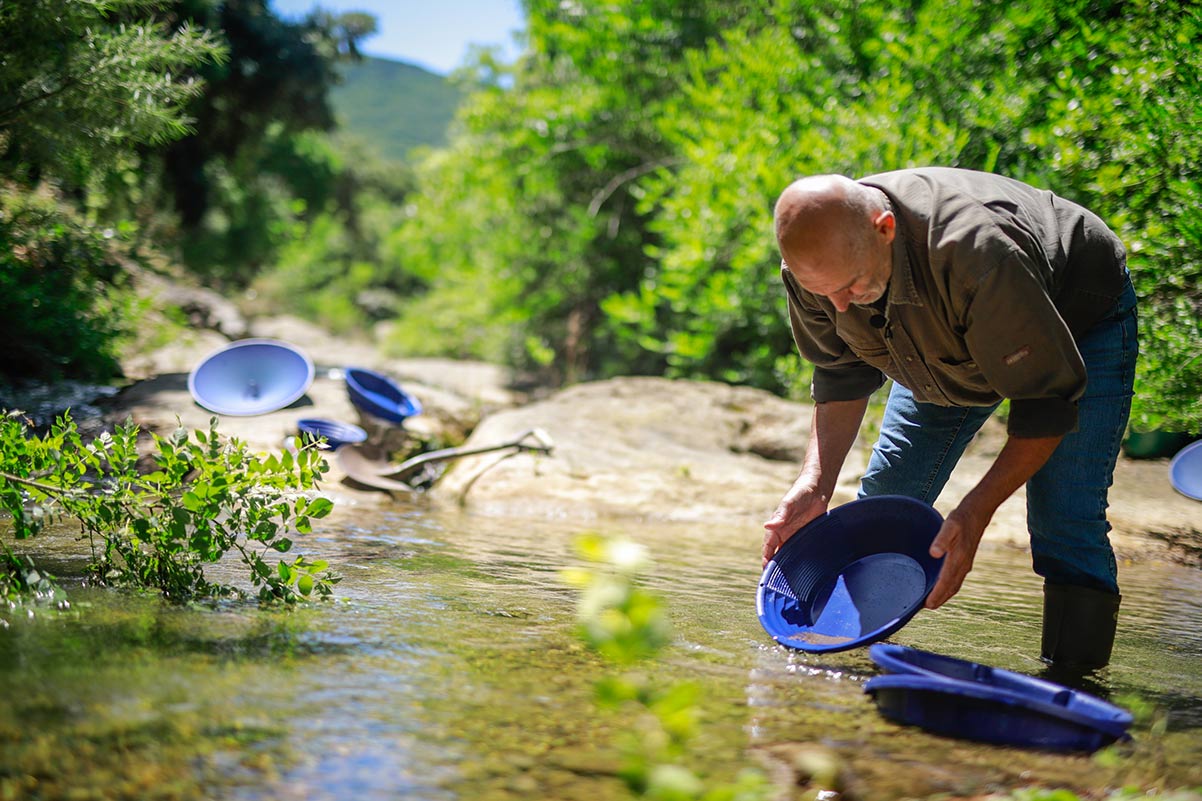Ett mycket prisvärt guldgrävarsats, i denna satsen igår en blå Batea vaskpanna, en sikt och tillbehör. Mycket genomtänkt och hög finish på detaljerna