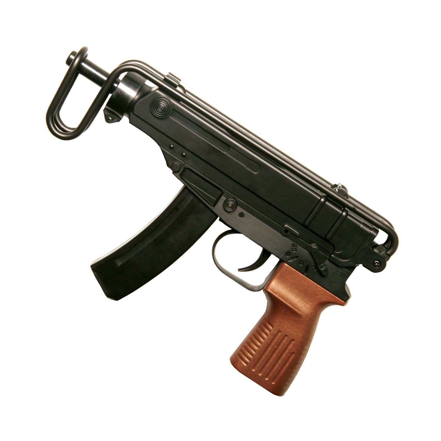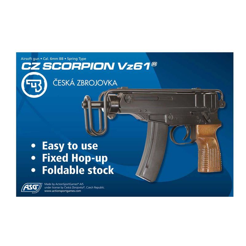 Fjäderdriven softairgun formad efter den klassiska kulsprutepistolen Skorpion Vz61. Kompakt pistol med utfällbart axelstöd.