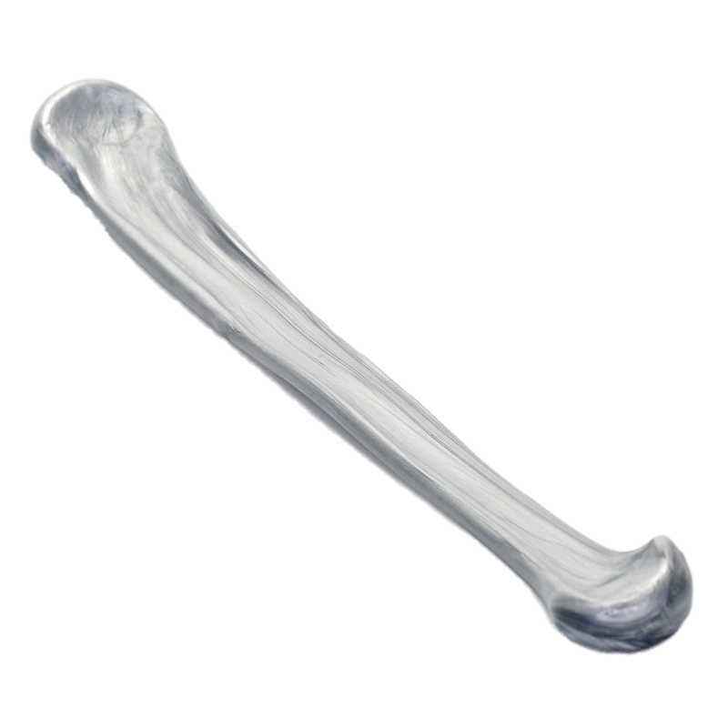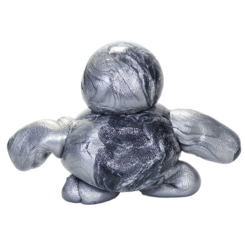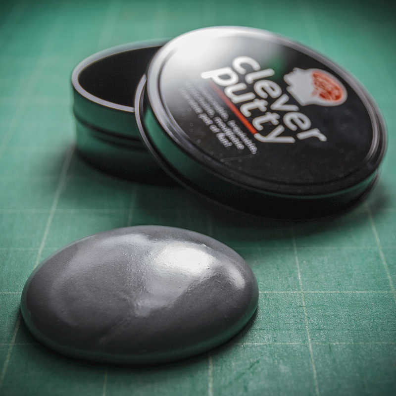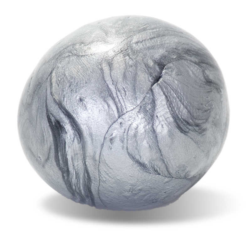 Denna gråsvarta skrimrande knådlerna som ser ute som metall kan knådas, dras isär och delas på och formas om och om igen. Kan studsa som en boll.