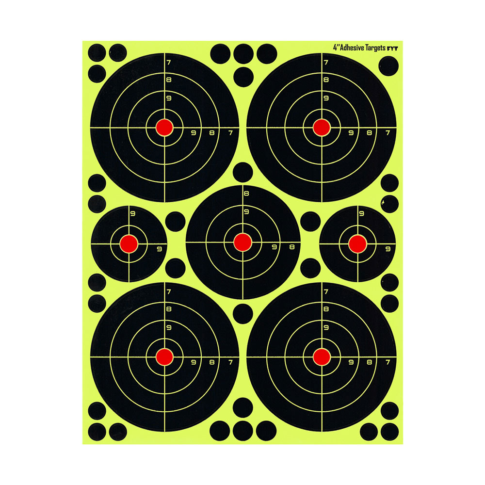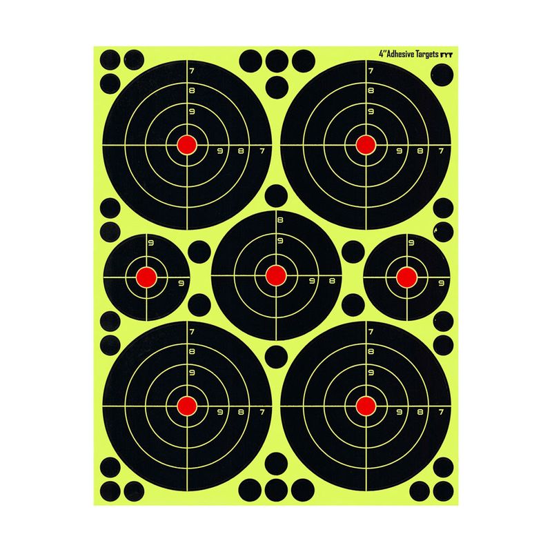Självmarkerande tavlor som kan klistras fast på skjutmål eller annat underlag.