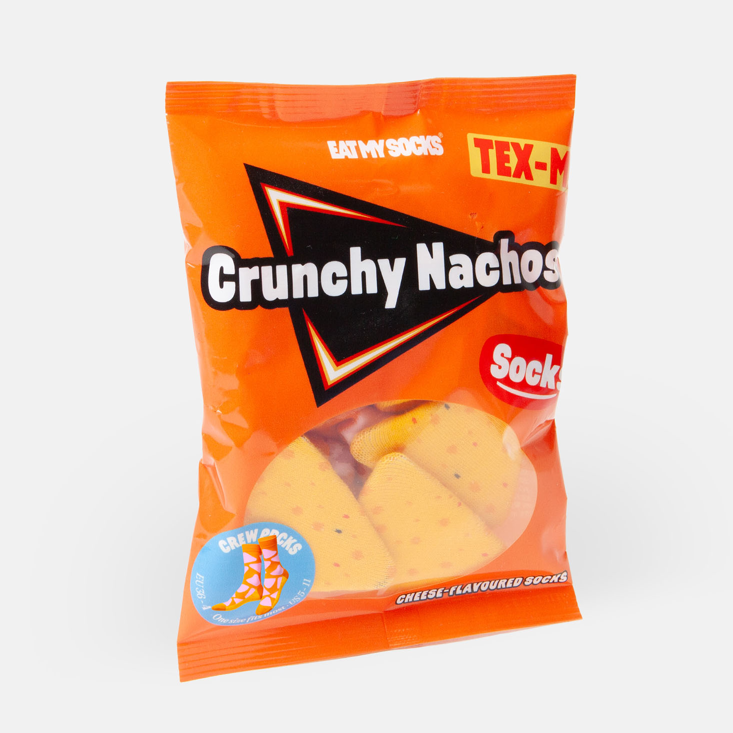 Låt dina fossingar krypa in i dessa roligt designade strumpor, förpackade som en påse med Crunchy Nachos. Mums, så snygga fossingarna kommer bli!