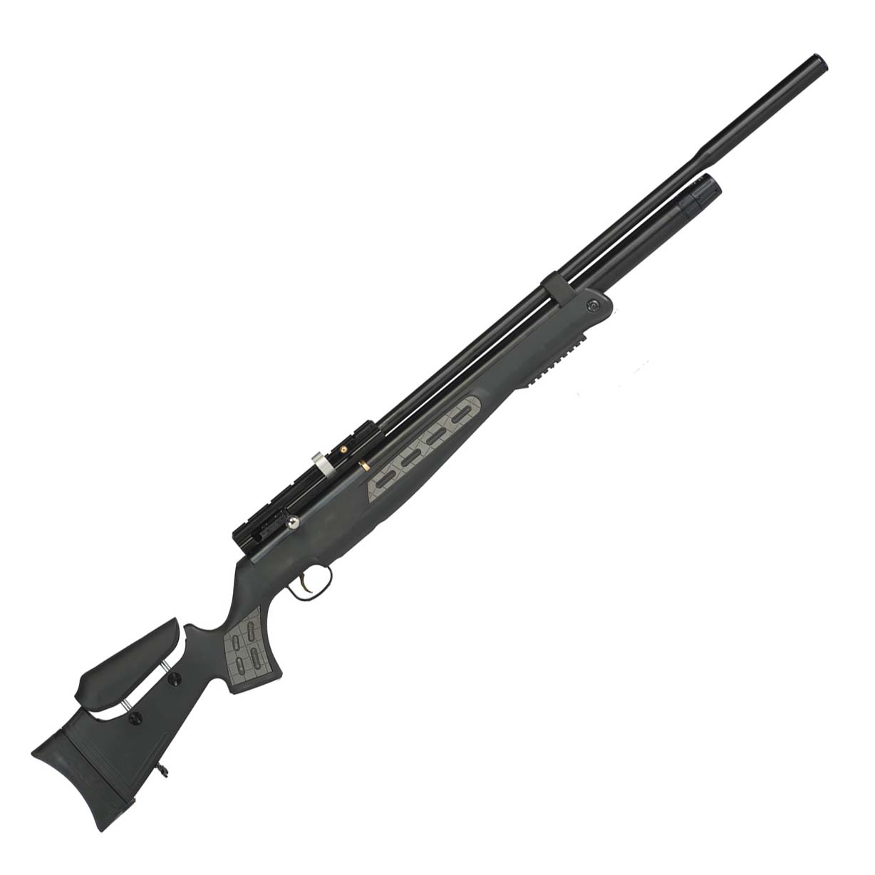 Svart syntetkolv med gummiinlägg i greppytorna. Picatinnyskena på kolvens undersida.