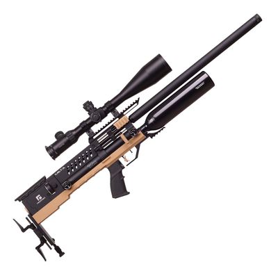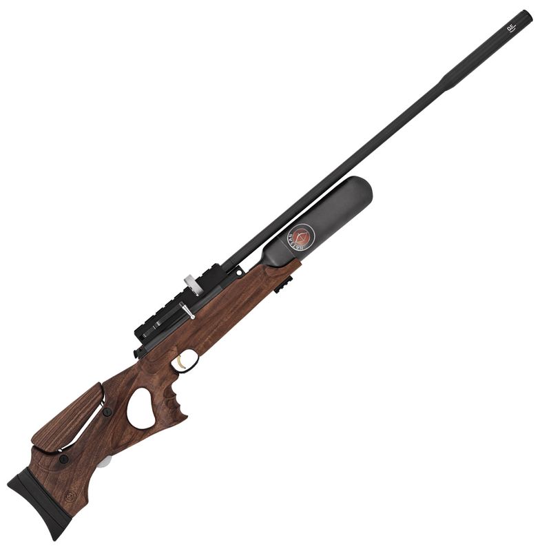 Hatsans toppmodell med tumhålskolv och extremt lätt kolfibertub (pi godkänd). Framtagen för hög precision med många skott per fyllning i hög hastighet. Denna med QE-pipa vilket ger ett skytte med ca: 50% lägre ljudnivå.