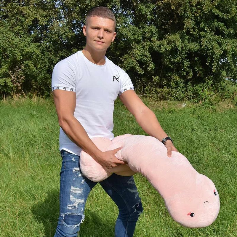 Denna kroppskudde på hela 100 cm föreställer en imponerande alfa-penis med söta ögon och ett förnöjsamt flin i ansiktet. Kudden är gjord av plysch och har en riktigt mjuk touch. Len, mjuk och stor peniskudde som är perfekt i soffan eller sängen för att avlasta höften eller knäna med. Sååå gosig!