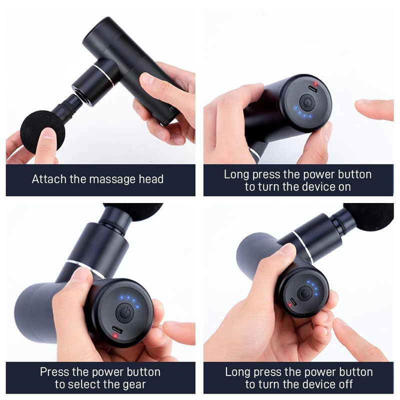 Med denna bärbara massagepistol kan du enkelt massera olika muskelgrupper och lindra stela och ömma muskler på din kropp.