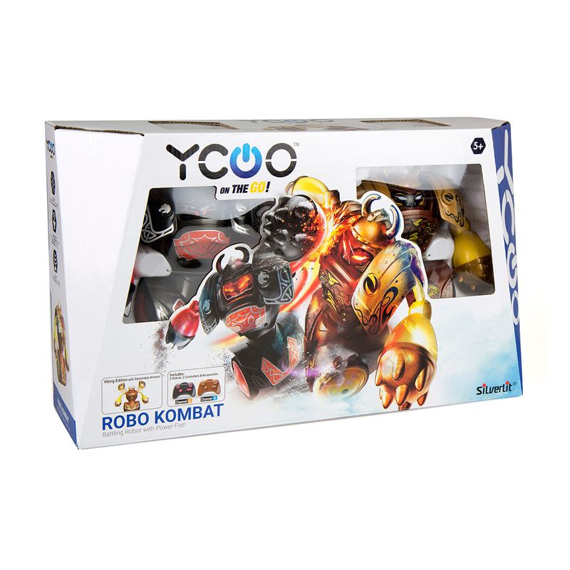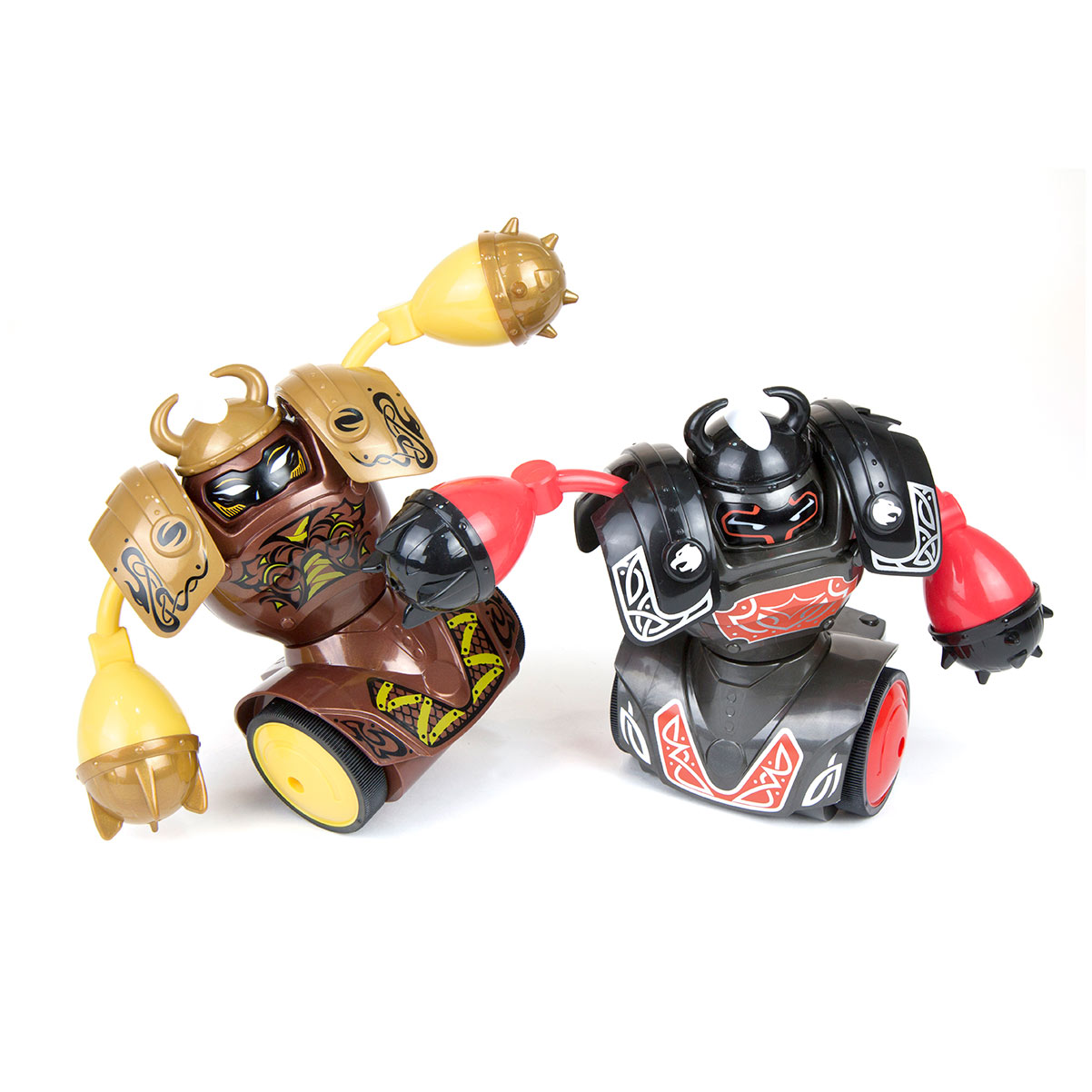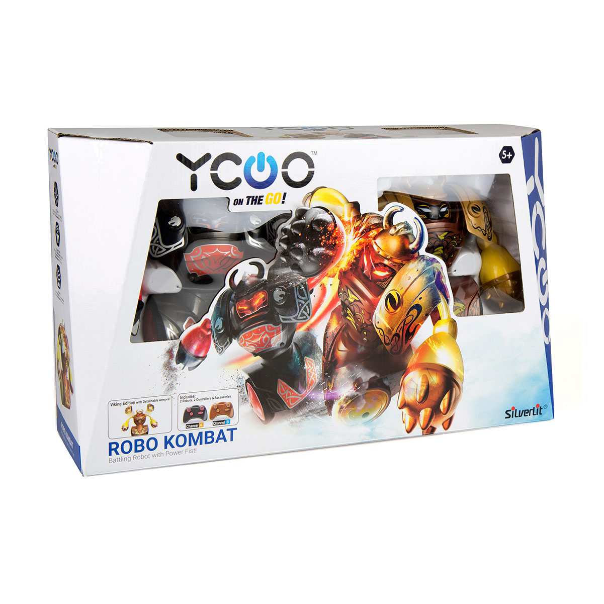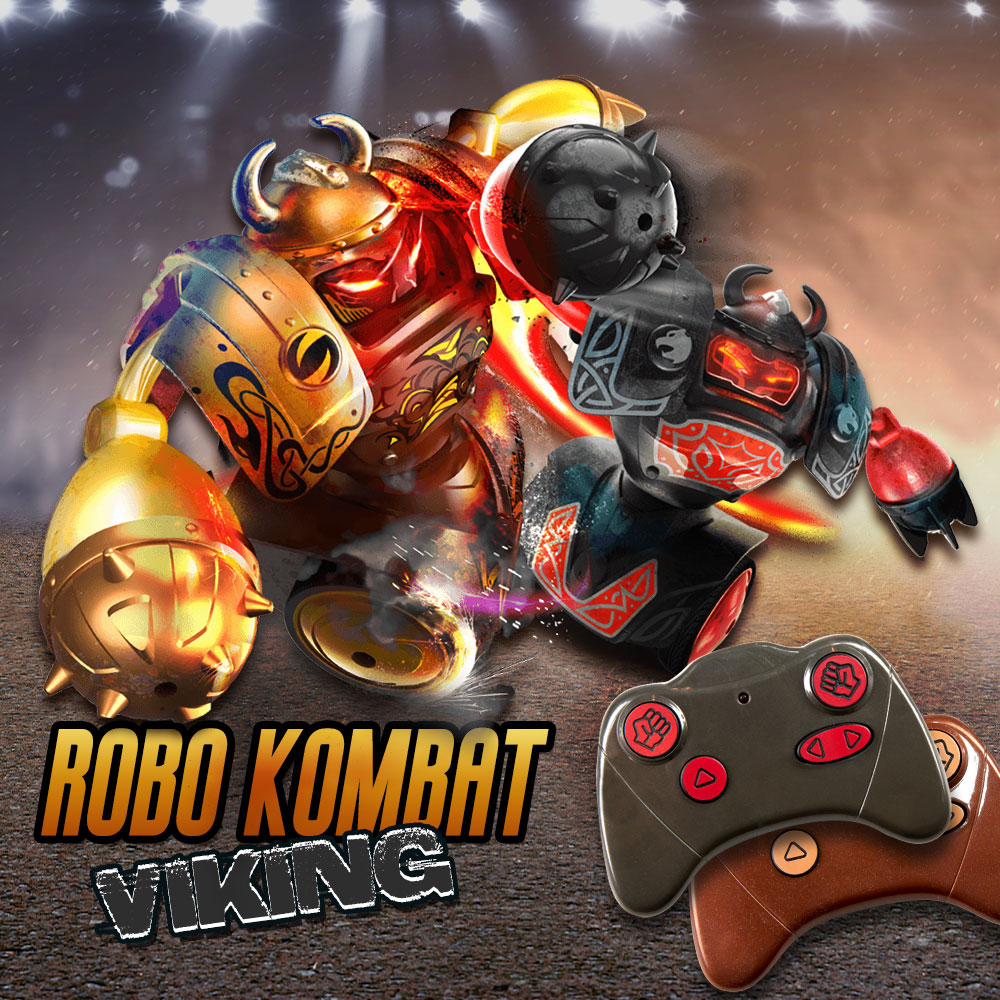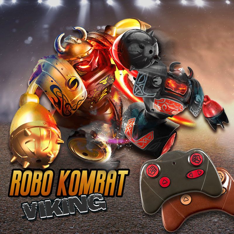 Låt fighten börja med det interaktiva spelet Robo Kombat Viking! Utmana familj och vänner på ett parti Robo Kombat. Robotarna är utrustade med ljus- och ljudeffekter som förhöjer spelupplevelsen. Det här är ett riktigt spännande spel som garanterat bjuder på skratt och spänning. Med hjälp av fjärrkontrollen så styr du din robot och delar ut smockor som förhoppningsvis fäller din motståndare.