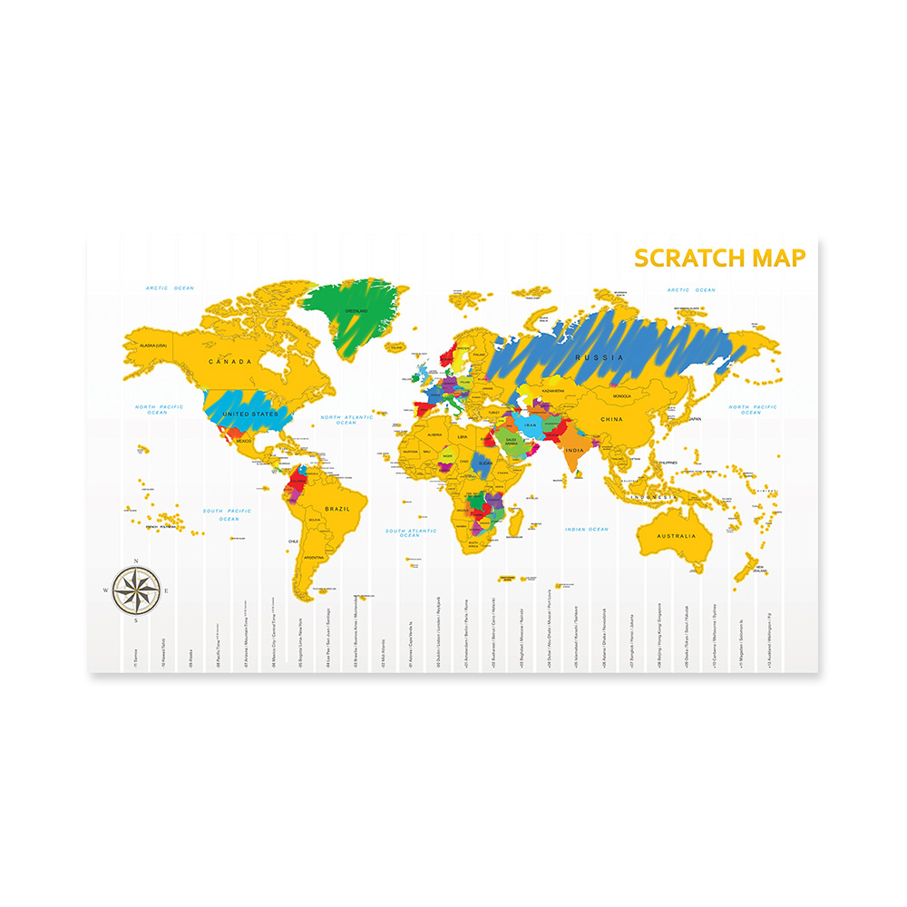 Är du välberest och vill bli påmind om de länder du besökt. På denna detaljerade världskarta kan du skarpa fram de länder du varit i och sedan hänga upp den på väggen.