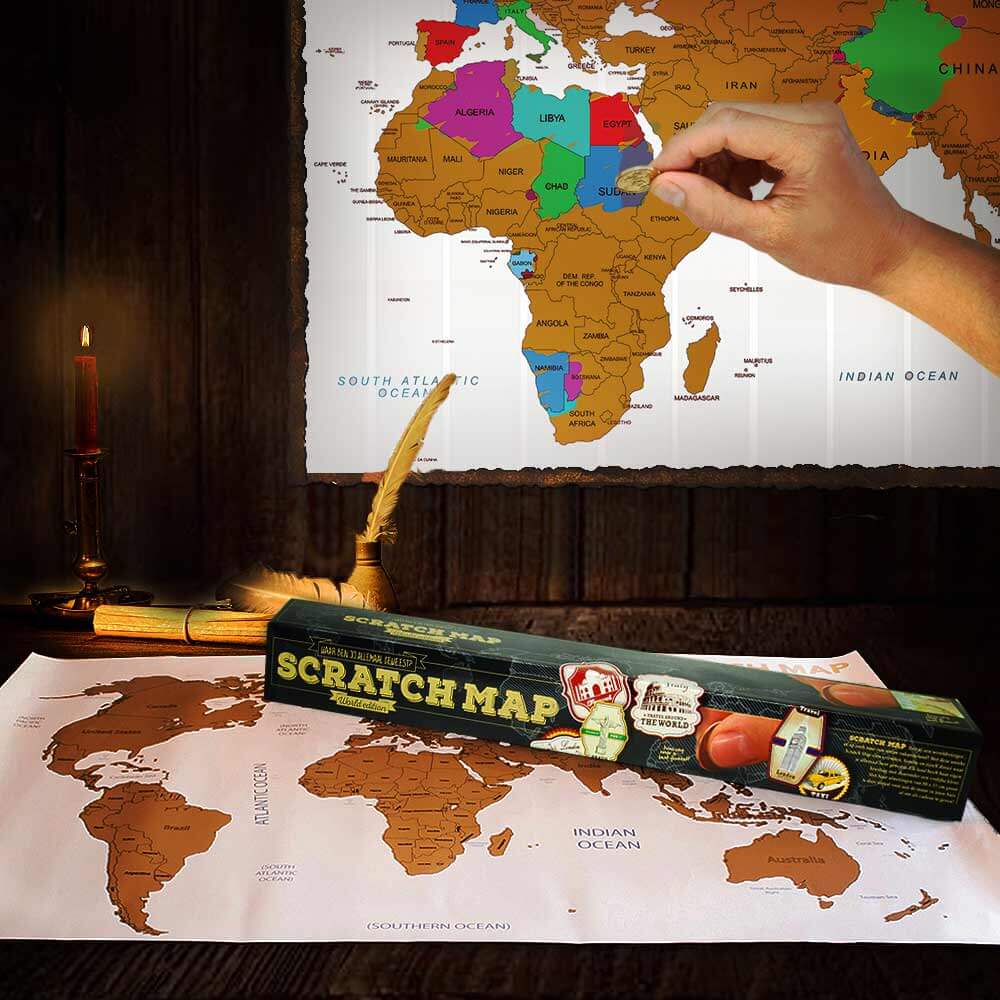 Denna skrapbara världskarta är av hög kvalitet och kommer i en fin och dekorativ förpackning. Alla värlsdelar och länder är täckta av en guldfolie som sedan kommer fram i glada färger när du skrapar på dem. Med Scrape Map World Edition kan du hålla reda på vilka länder och regioner du har varit i samt vilka du har kvar att besöka. Ju mer du skrapar bort, desto mer detaljerad och färgglad karta kommer det att bli.