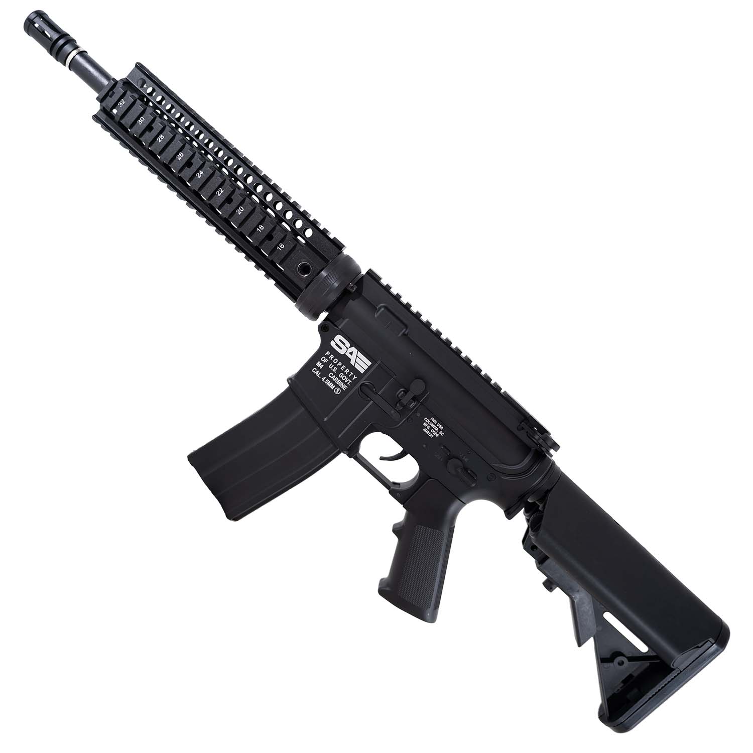 Swiss Arms FN Herstal M4 RAS är ett semiautomatiskt gevär som drivs av CO2. Denna modell är tillverkad av metall och polymer, väger 2015 gram.